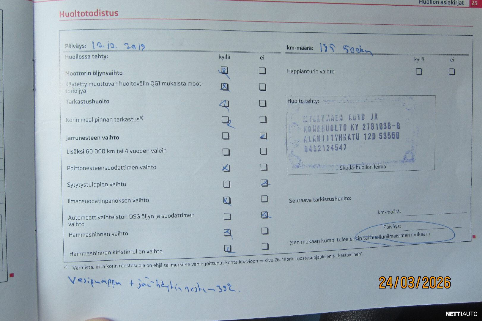 Rekisterinumero ROO-12 Mittarilukema 292 000 km Moottori 1,6 l, Diesel Vuosimalli 2012 (ensirek. 1-2012) Vaihteisto Manuaali Vetotapa Etuveto Katsastettu 1-2026 Korimalli Tila-auto Auton tyyppi Henkilöauto Väri Sininen metalliväri