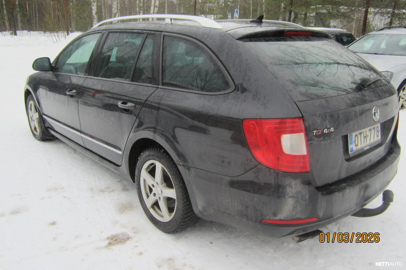 Rekisterinumero OTH-778 Mittarilukema 380 000 km Moottori 2,0 l, Diesel Vuosimalli 2012 (ensirek. 3-2012) Vaihteisto Manuaali Vetotapa Neliveto Katsastettu 4-2025 Korimalli Farmari Auton tyyppi Henkilöauto Väri Musta metalliväri